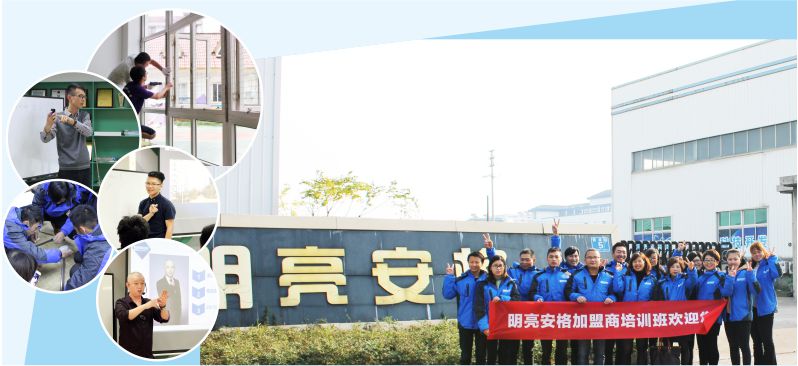 明亮安格開(kāi)設(shè)培訓(xùn)班,以成熟的培訓(xùn)機(jī)制,特聘專業(yè)講師和優(yōu)秀加盟商為加盟商開(kāi)展企業(yè)文化、產(chǎn)品知識(shí)、測(cè)量安裝、銷(xiāo)售技巧、活動(dòng)策劃、市場(chǎng)推廣、渠道拓展、公關(guān)禮儀等專題培訓(xùn)。